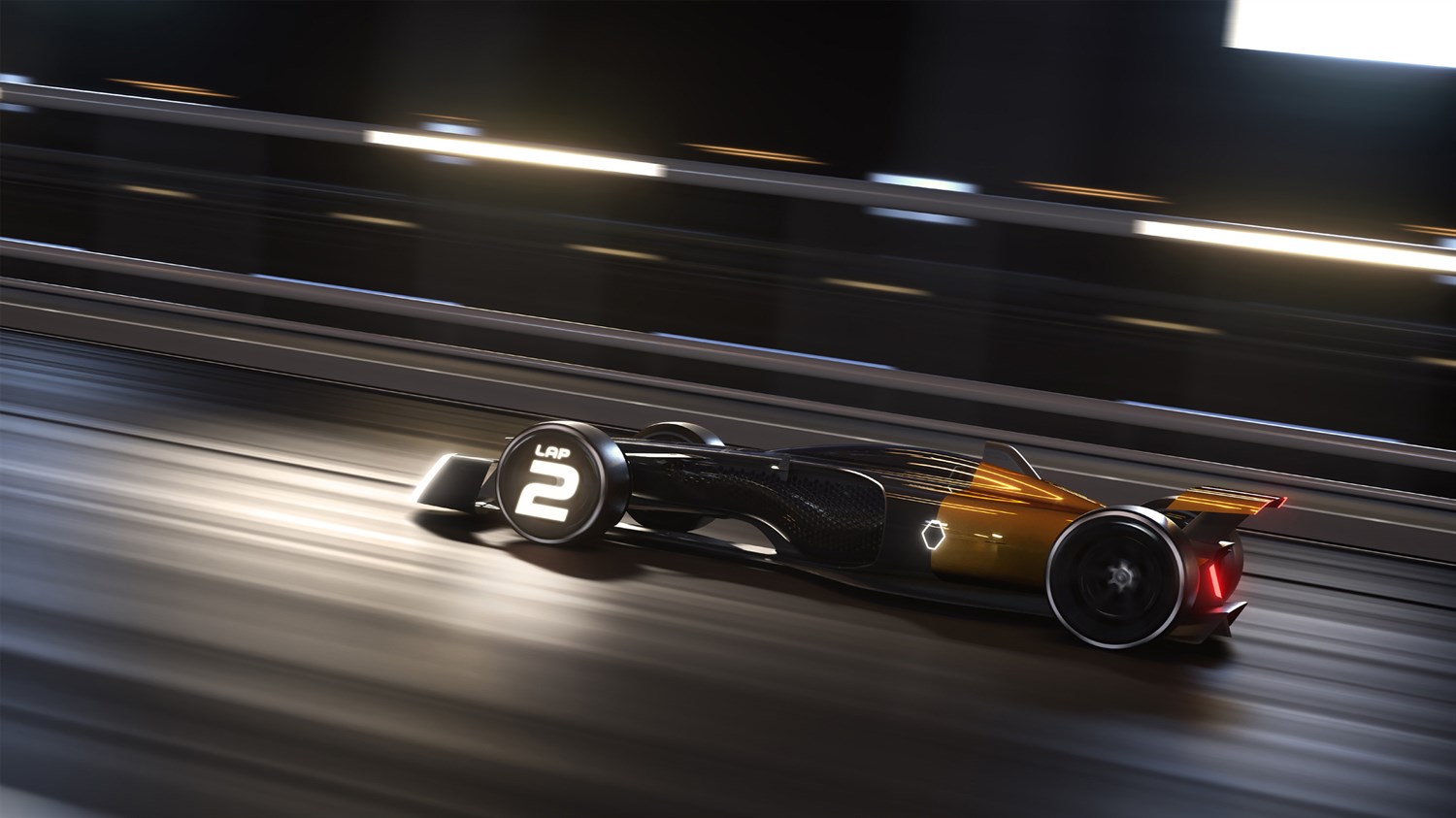Az élmény fokozása érdekében a kerekekbe épített, aktív LED fényforrásoknak köszönhetően megjelennek az olyan lényegi információk, mint a helyezés, illetve az autó energiaszintje.